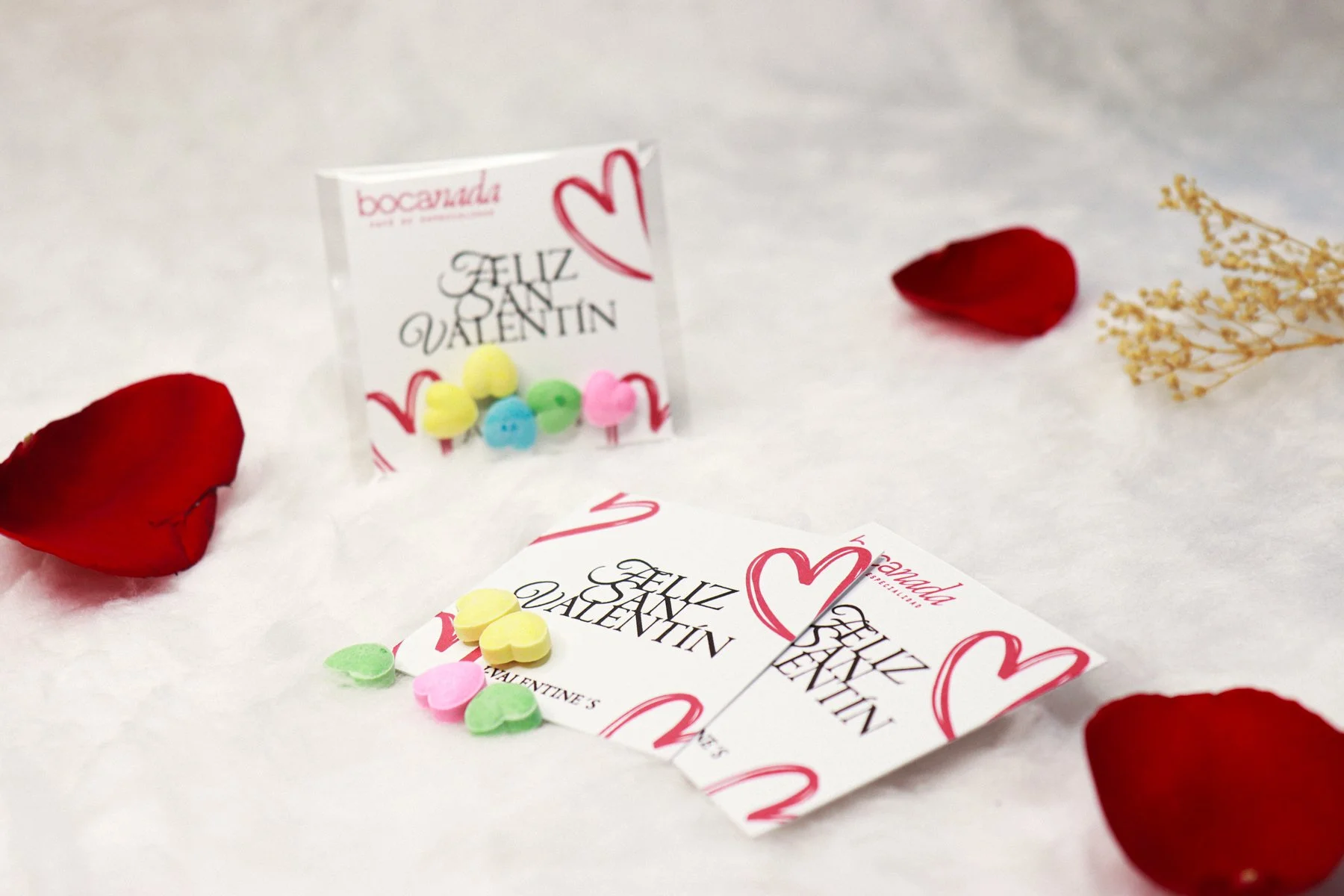 Acompañado de deliciosos y coloridos dulces en forma de corazón, para compartir con amigos, familiares o clientes.