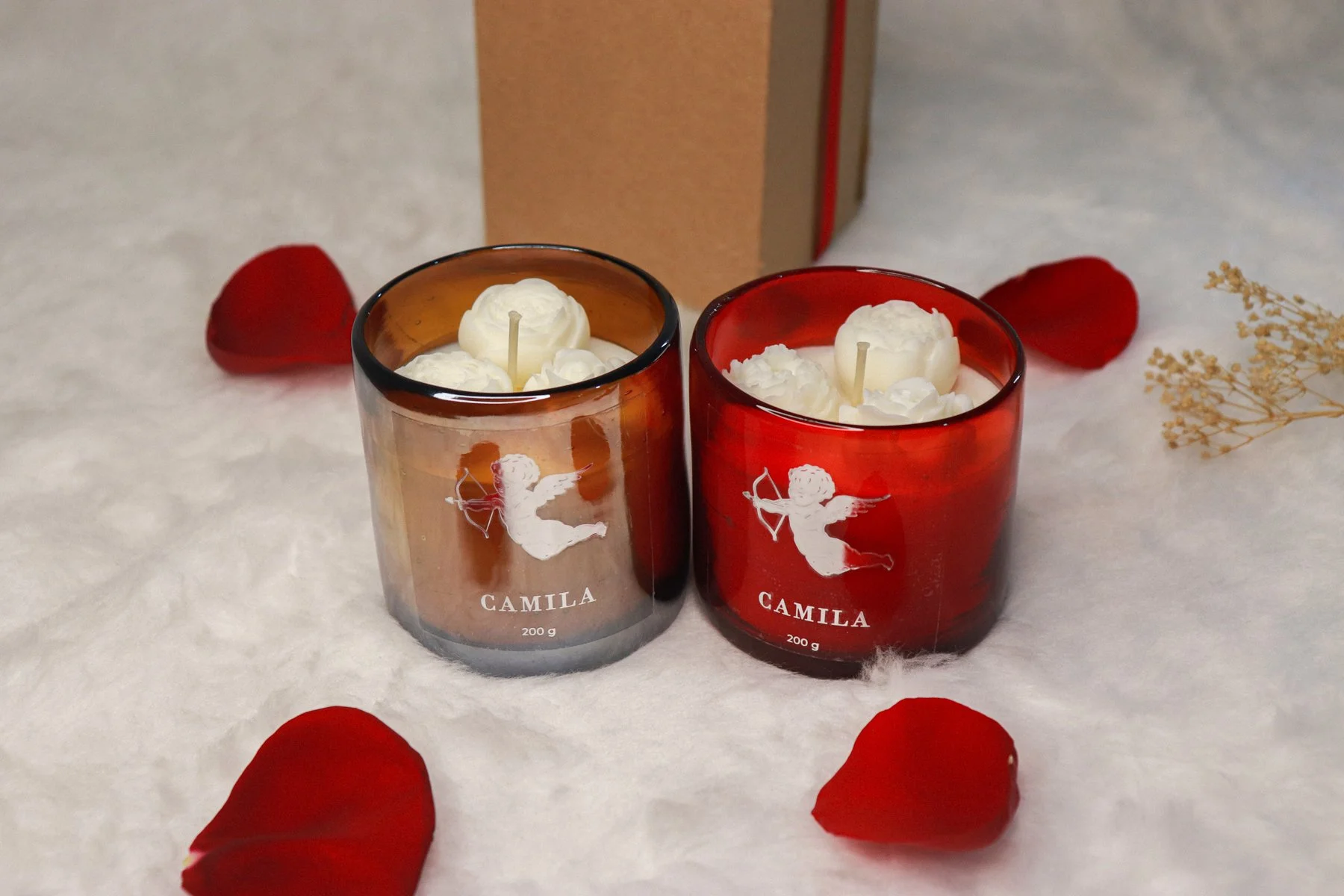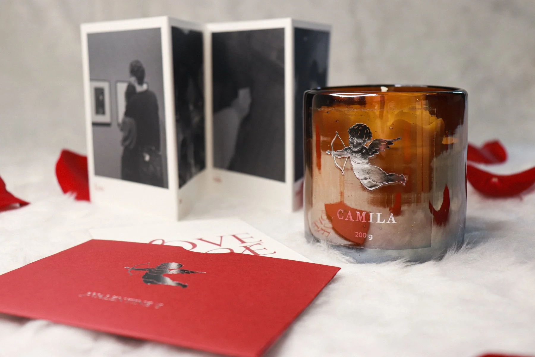Comparte momentos especiales con nuestro kit cupido, combina la calidez de una vela de soya artesanal con tus recuerdos más preciados.