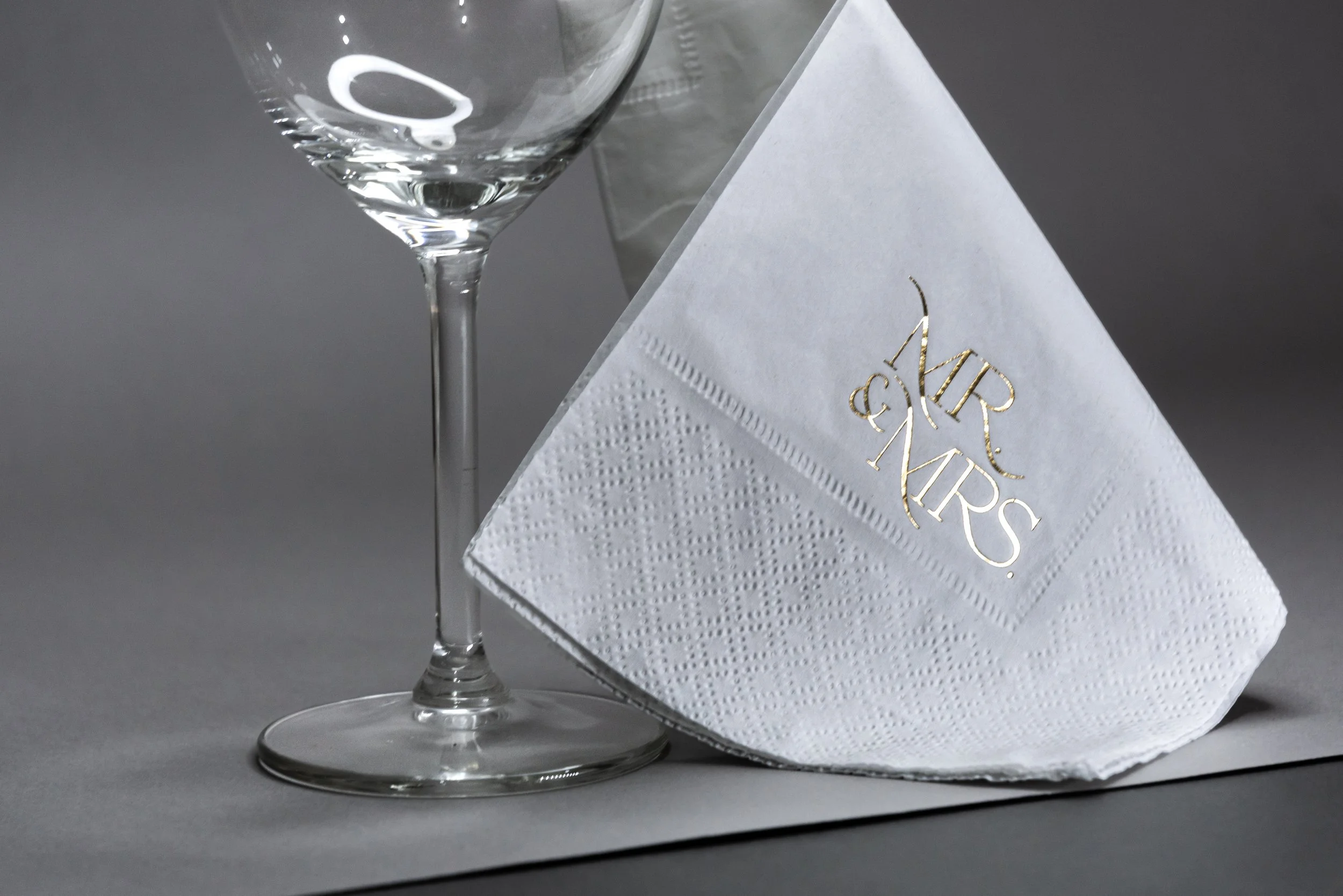 Servilletas blancas tipo guest con grabado en Hot Stamping